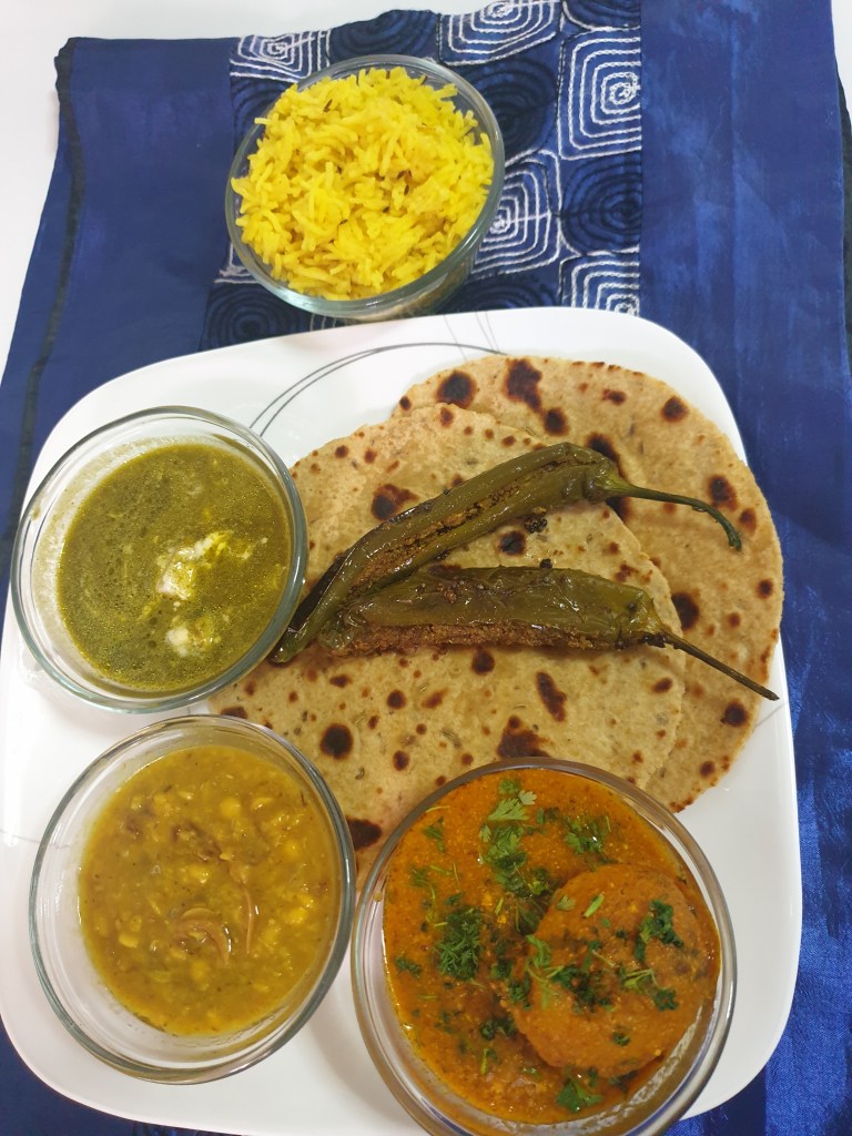 P.S.: The quantity of red chillies may seem daunting but trust me the saag did not turn out spicy hot as would be expected because Kashmiri chillies as usual are mild.