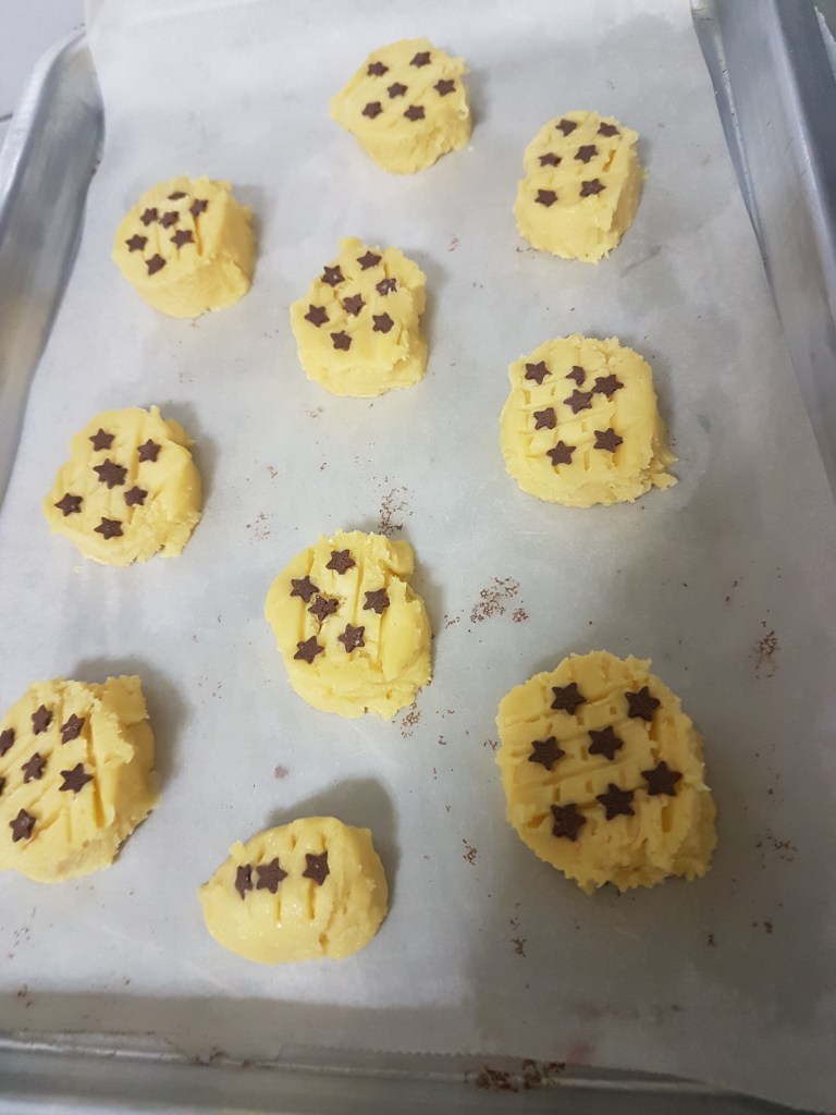 - Make criss-cross lines with a fork on top of the cookies or use sprinkles to create a design.