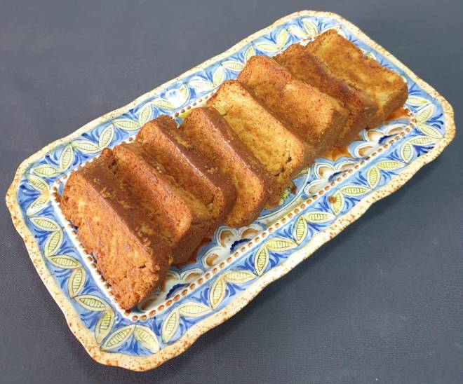 - Once cool slice the cake into 1/2 “ thick slices.