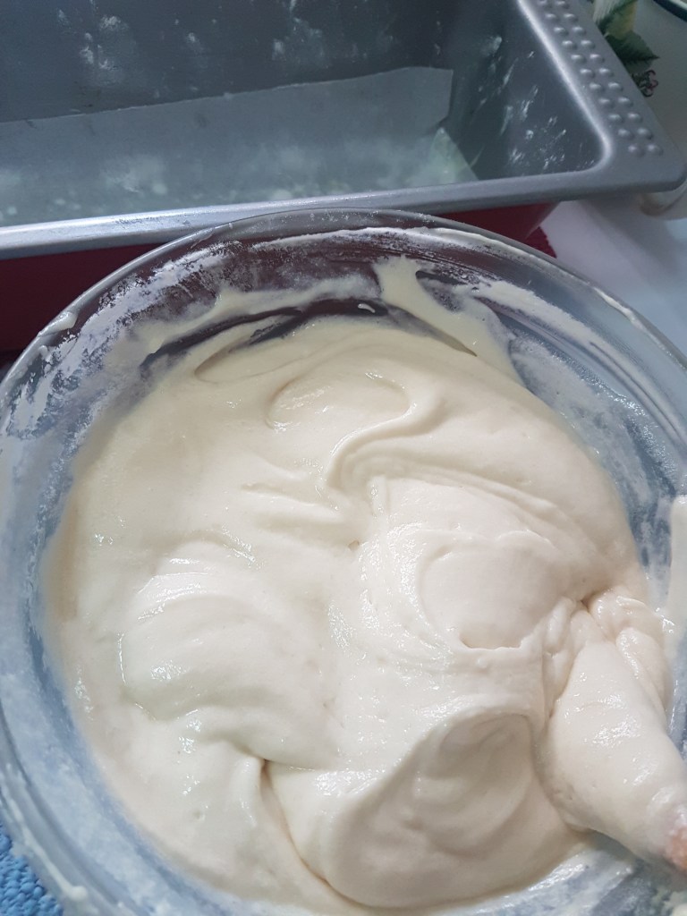 - Pour into the baking pan and tap gently to smoothen and remove any air bubbles.
