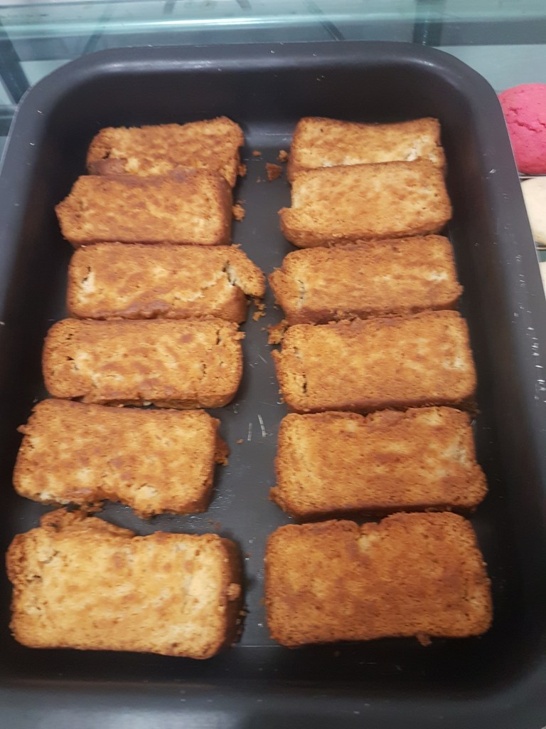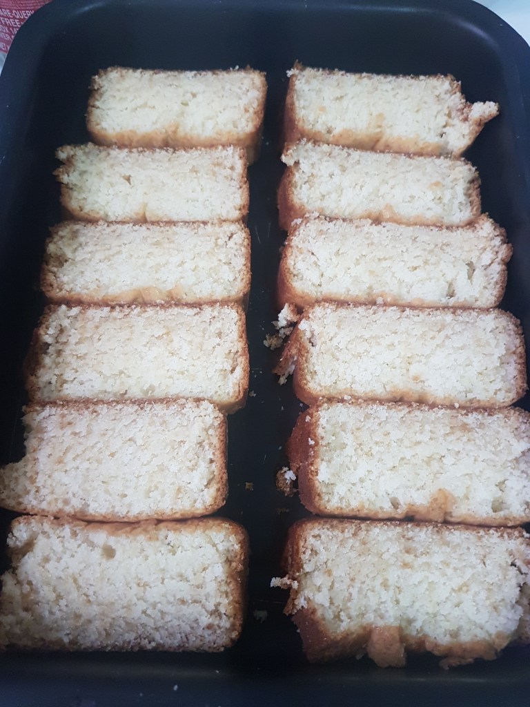 - Preheat oven, place the cake slices on a baking tray and bake 20 to 25 mns till the base is light golden brown.
