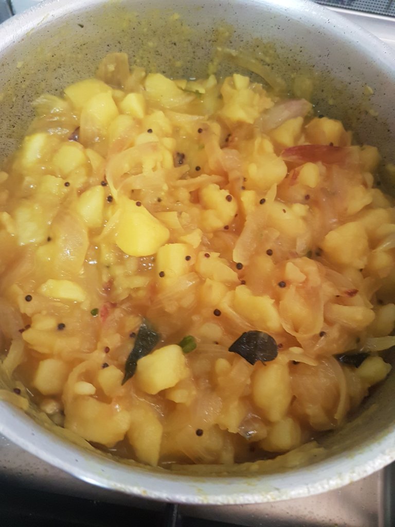 - Add the sliced onion and fry till light brown.