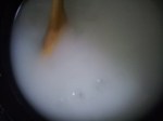 - Make the falooda strands by mixing the water and corn flour and cooking on low flame till it becomes thick and translucent.
