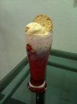 - Top with chilled milk almost upto the brim then top with two or more scoops of valilla ice-cream.
